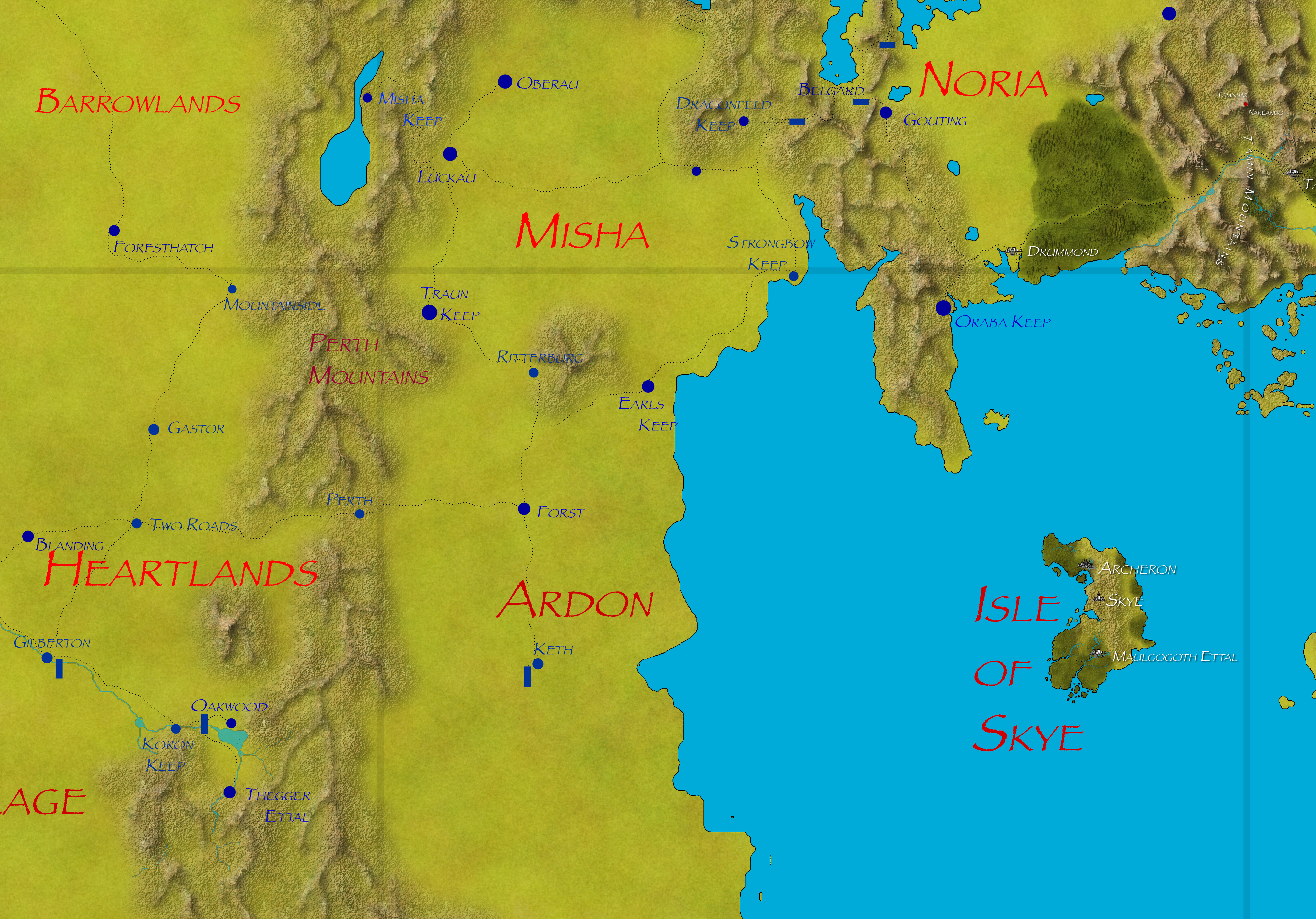 Map of the Dalelands including the southern Tämin Mountain Range and Cavan